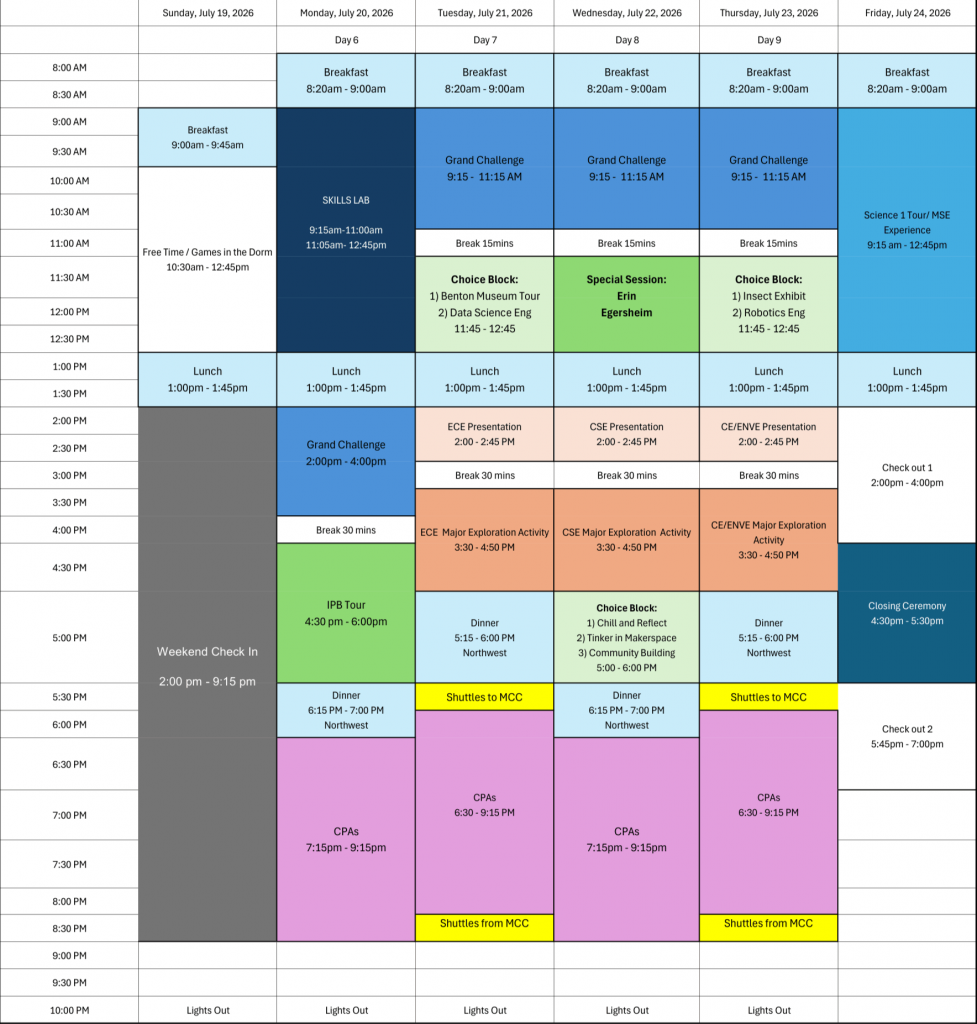 Explore Engineering is a two week residential summer program designed to introduce rising high school students to various engineering majors. Our residential programs give students the full college feel, from buffet-style dining halls, premium-style dorms, and a packed schedule filled with learning, hands-on projects, and community building.